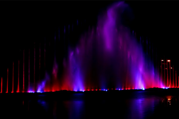 水幕:高壓水霧形成 “流動屏幕”,光影與水花融合,適配湖泊、噴泉、河道。
